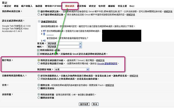 如果想更改Google Voice的預設值,可點開Gmail中的設定,點選<Google Talk>即可